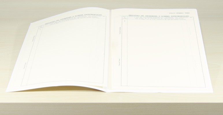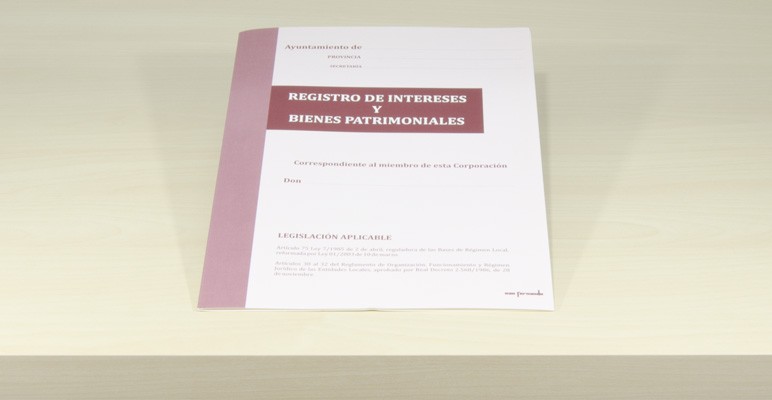 Libro con hojas móviles para tomar declaración de intereses y bienes patrimoniales de cada Concejal