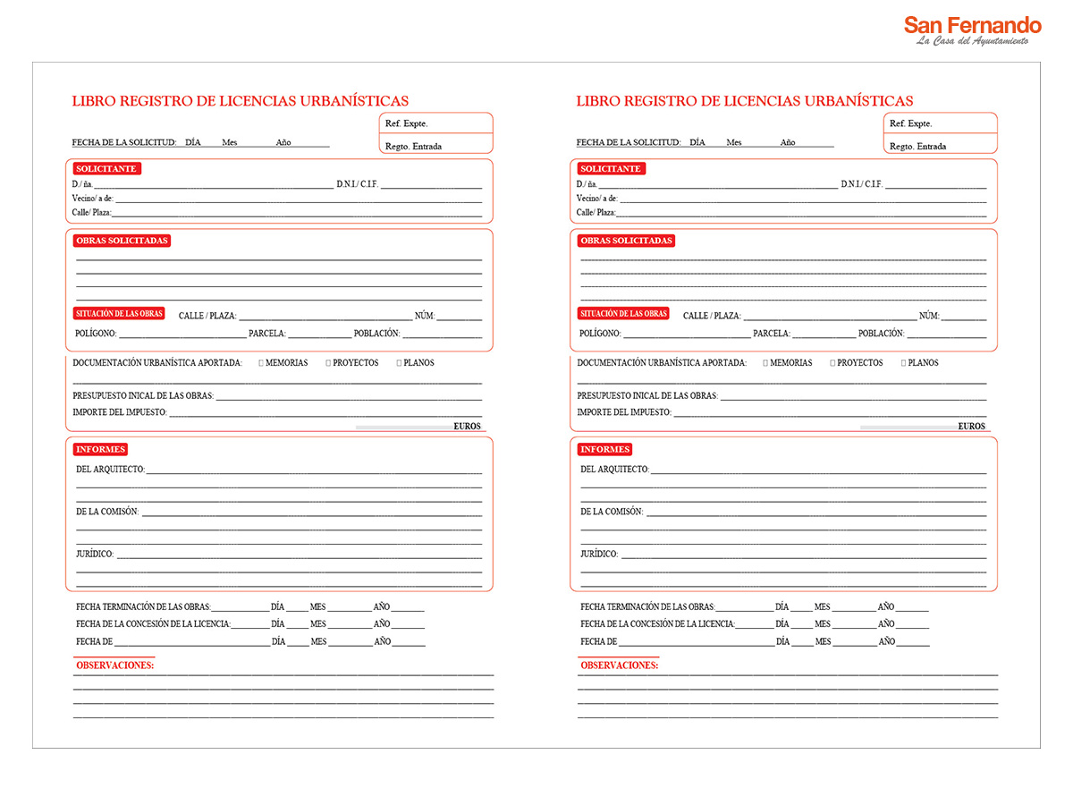 Descripción: Libro para el Registro de Licencias Urbanísticas